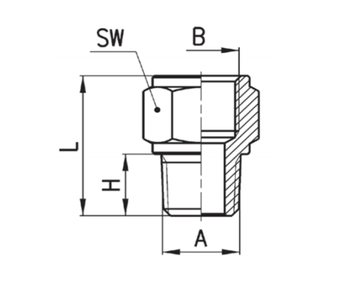 Bir uçta erkek NPT iplikleri ve bir dişi ve erkek dişli boruya veya bağlantı parçasına bağlanmak için diğerinde dişi NPT iplikleri vardır.
