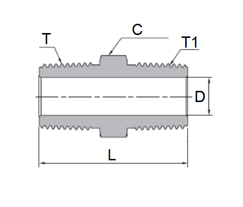 İki dişli boru veya bağlantı parçalarını bağlamak ve boru uzunluğunun uzatılması için altıgen meme ucu, bir anahtarla sıkılaştırmak için altıgen orta bölüm.
